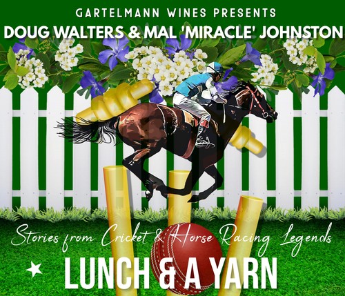 Lunch & A Yarn Friday 27th February 2026 at 12pm Sparkling wine on arrival and lunch $125 per person Join us for a lunch & a yarn with cricket and horse racing legends Doug Walters & Mal 'Miracle' Johnston. Doug and Mal will be sharing stories from their illustrious careers while you enjoy a delicious Tapas style Luncheon. The day will include raffles and auctions including some spectacular prizes, with funds raised going to support local junior cricket. Lunch & A Yarn 27th Feb 2026 Lunch & A Yarn Add To Cart $125.00 / 1 x Ticket SKU: DWLUNCH Quantity: Add To Cart